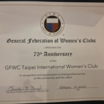 We were so surprised that President Suellen brings the certificate of congratulations to TIWC 75th Anniversary. How warm she was and she delivered a sweet speech to us, all members were so touched by her.