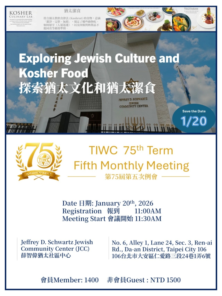 20260120 TIWC Monthly Meeting – Exploring Jewish Culture and Kosher Food✨ 2026年一月例會-探索猶太文化,品嚐猶太潔食
